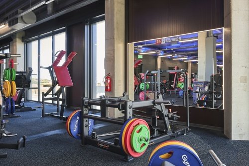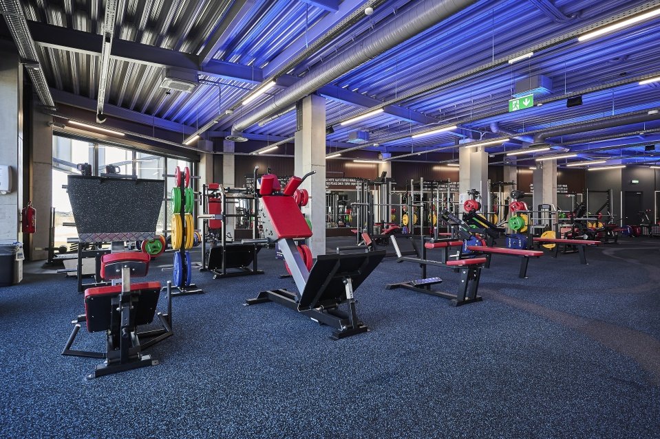 Total of 1 Technogym treadmills, 4 Gymleco treadmills, 2 Skillmills treadmill,  8 Gymtec training bikes, 6 Gymtec crosstrainers, 20 Gymleco block machines and 15 Gymleco free weight machines, 3 C2 rowing machines, 1 Ski Erg, 1 Stairmaster, Eleiko Deadlift Platform