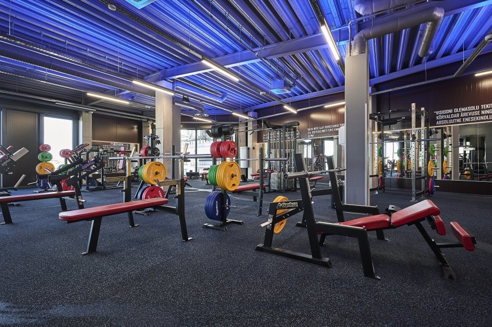 Total of 12 Technogym treadmills, 2 Skill Mills treadmills,  10 Gymtec training bikes, 8 Gymtec crosstrainers, 20 Gymleco block machines and 30 Gymleco free weight machines, 1 professional press bench for competitions, professional press bench, elevated floor, 4 C2 rowing machines, 1 SkiErg, 1 YOYO Leg Curl http://www.nhance.ee/reie-2/ and 1 Technogym Stairmaster