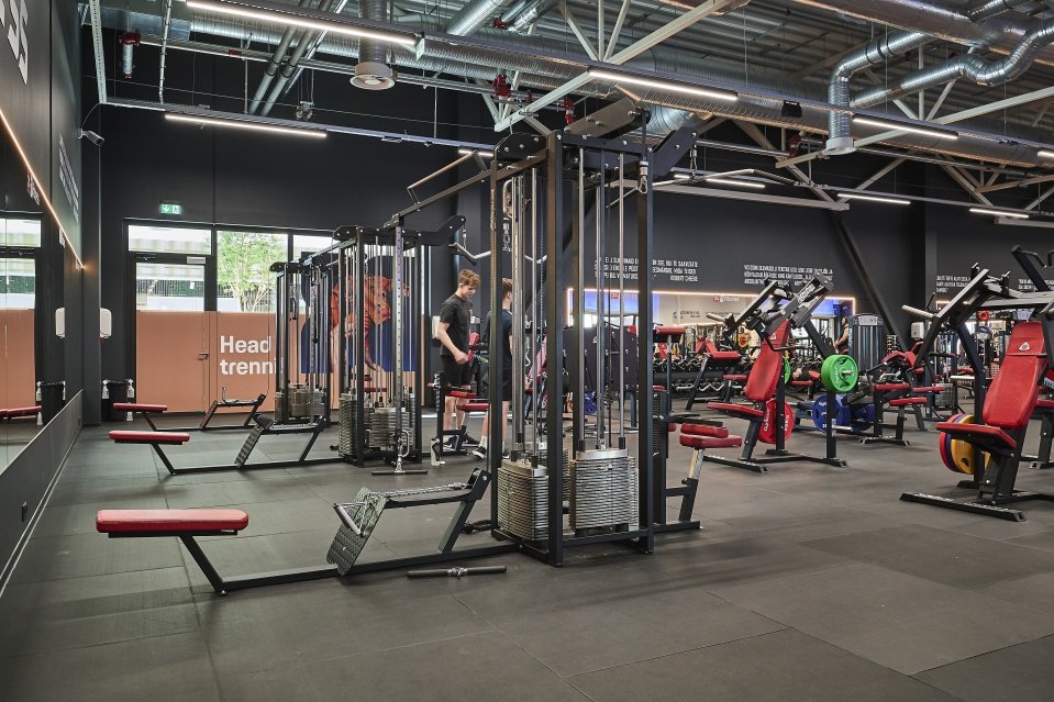 2 Technogym jooksurada, 2 SkillMill jooksurada, 16 Gymleco jooksurada, 2 Technogym STAIRMASTER; 12 Gymleco ratast, 10 Gymleco crosstrainerit, 4 sõudeergomeetrit, 1 WATTBIKE PRO, 35 Gymleco plokkmasinat ja 30 Gymleco vabaraskustega masinat, 4 C2 sõudeergomeetrit, 1 SkiErg, 2 Eleiko Tõsteplatvormi