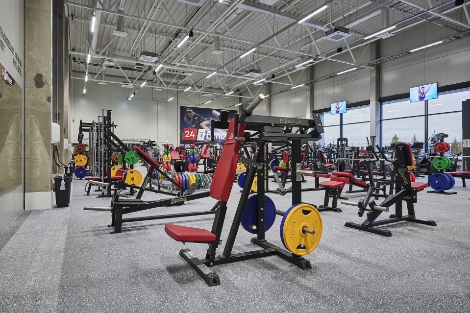 Всего 4 беговых матов Gymleco, 2 SkillMIll, 5 велосипедов Gymtec, 4 кросстрейнеров Gymtec, 14 блок-тренажеров Gymleco и 20 тренажеров со свободным грузом Gymleco, 2 гребных тренажера C2
